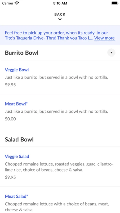 With the Tito's mobile app, ordering food has never been easier. Whether you're looking for a quick snack or a full meal, we've got you covered. Just browse our easy-to-use menu, customize it how you'd like, place your order using our secure payment system, and sit back! A push notification will alert you when your order will be ready.