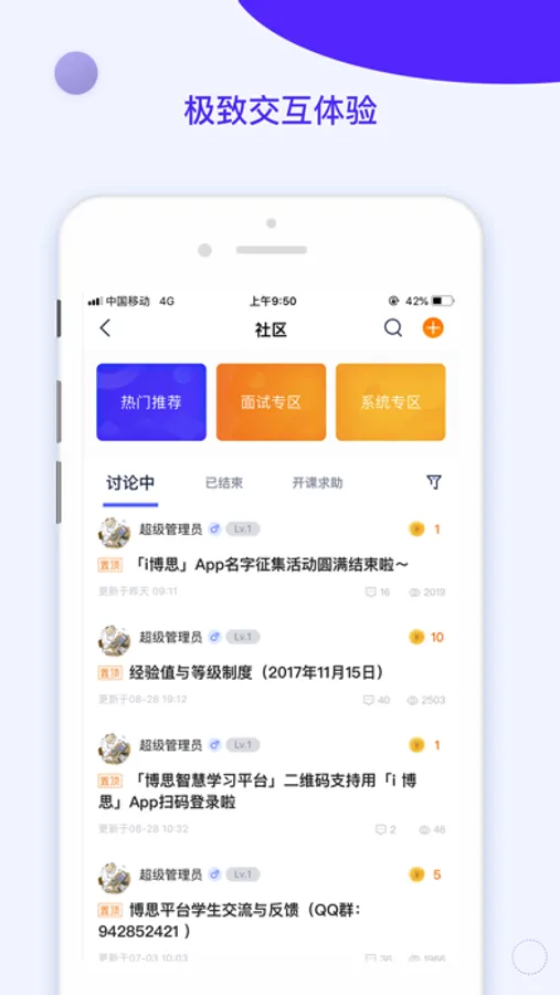 博思学习平台主要功能包括查看行业新闻,课外知识,内容调查等信息,查看学生个人信息,学习信息查看,观看直播课程。浏览技术专题。