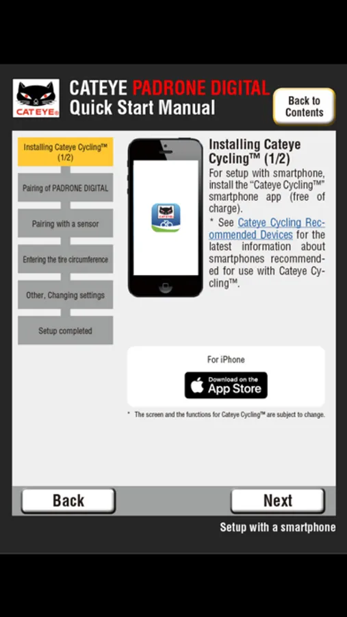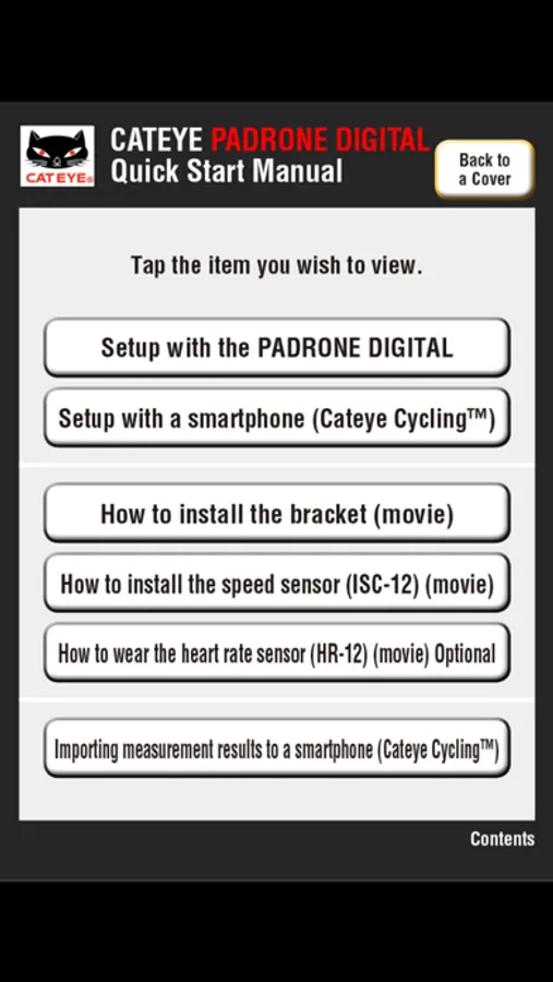 This Quick Start provides information on how to prepare the CATEYE Padrone Digital with dedicated chapters such as Setting up the computer, How to install the sensor.
