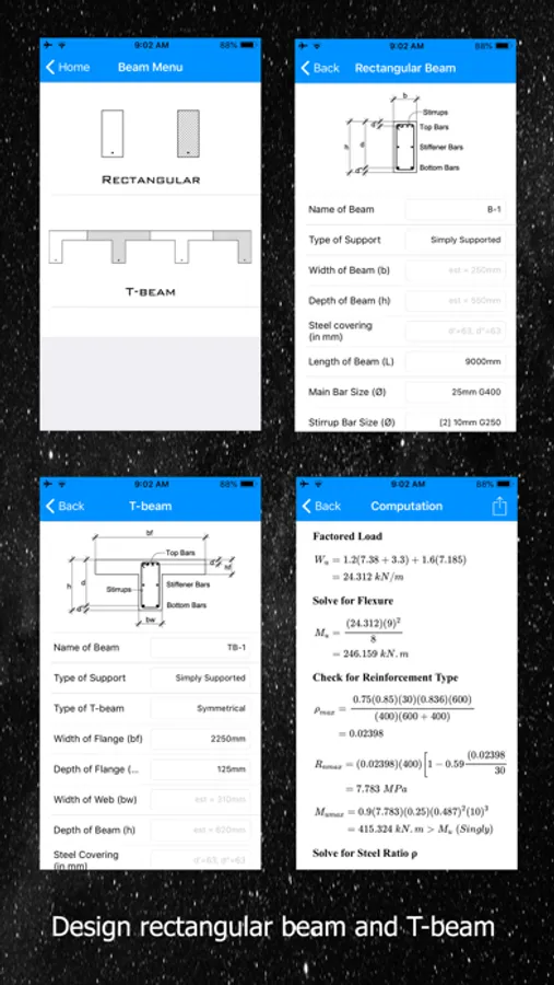 Students can quickly check their design computations and simulate learning through testing different parameters. Teachers can have unlimited sample problems for students to practice on. And Professionals will have the tools for a quick Analysis and Design that saves time and increase productivity.
