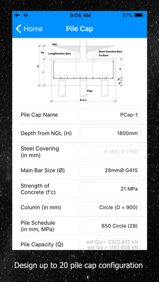 - Design Pile caps, up to 20 pile configurations