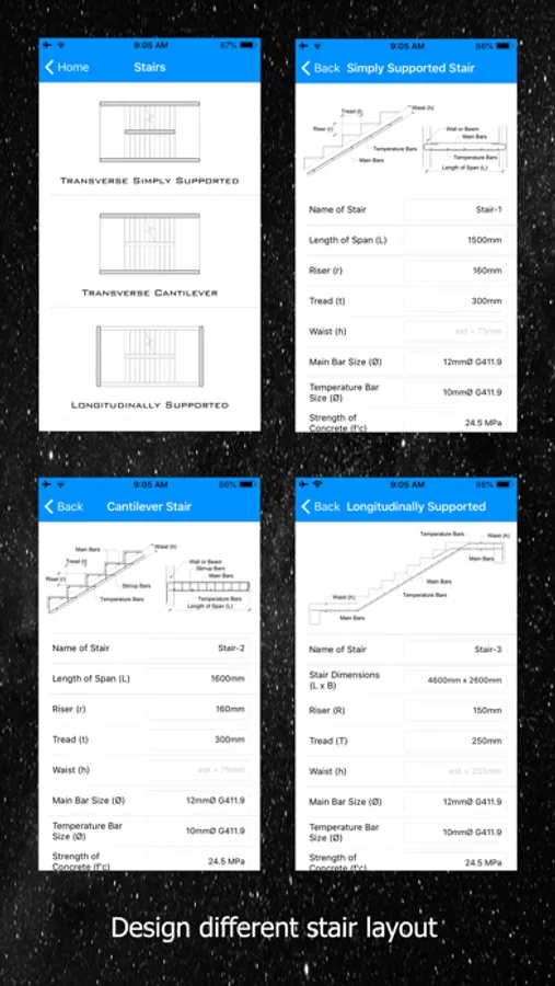 - Design Transversely and Longitudinally Supported Stairs