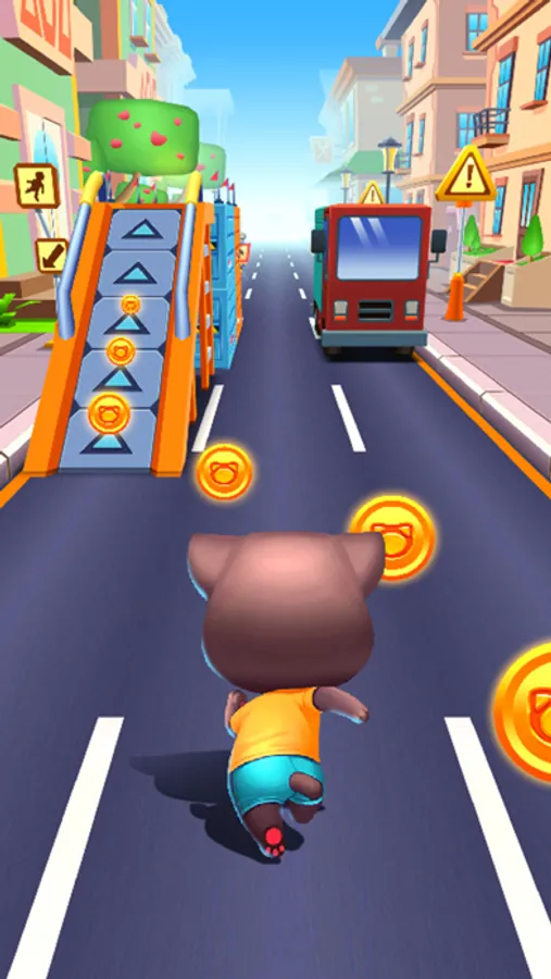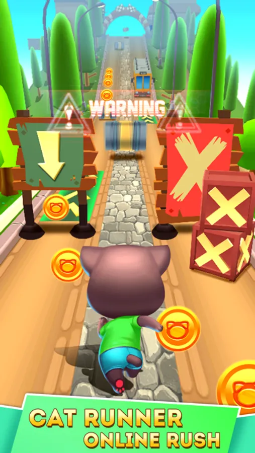 It is very easy to control, run as fast as you can, rush in the endless city scene. Be careful to avoid carrier, collect more and more coins and buy more props. There are many pet to choose, cat, unicorn and dog. Every pet runner have unique style. Take your liked pet to get the first runner.