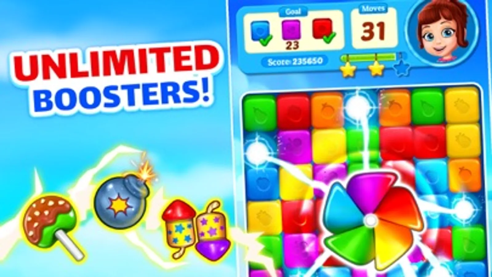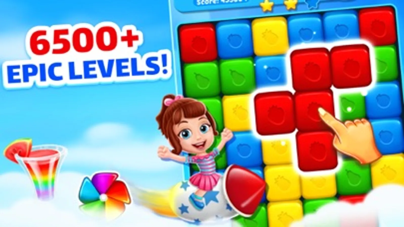 Embark upon a fantastic adventure as you solve tons of juicy puzzles. All you have to do is tap to match the colored fruit blocks on the screen. Make bigger matches and you'll create sweet power-ups, perfect for making some fresh explosions across the screen! Clear each puzzle by blasting the pieces away, then use your matching skills to take on the next level.