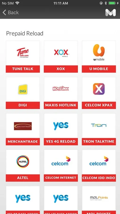 Prepaid - Celcom, Maxis, DiGi, UMobile, YES, TuneTalk, XOX, Clixster, Altel, Tron, Merchantrade, iTalk Mobile, Redtone Plus, Digi Chatz.