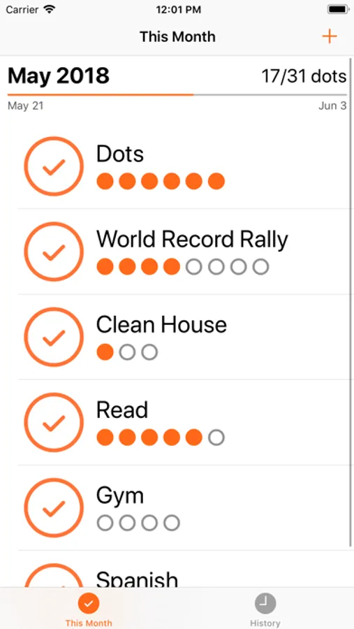 Dots will encourage you to choose what you really want to do, to be realistic about what you can do, and will show you how much you get done every month.