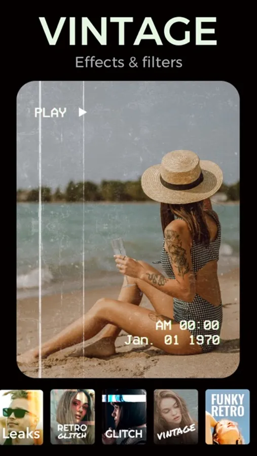 Amazing selection of trendy effects & filters that react to the music: Vintage, Dispo, VHS, Glitch, beauty, and more.