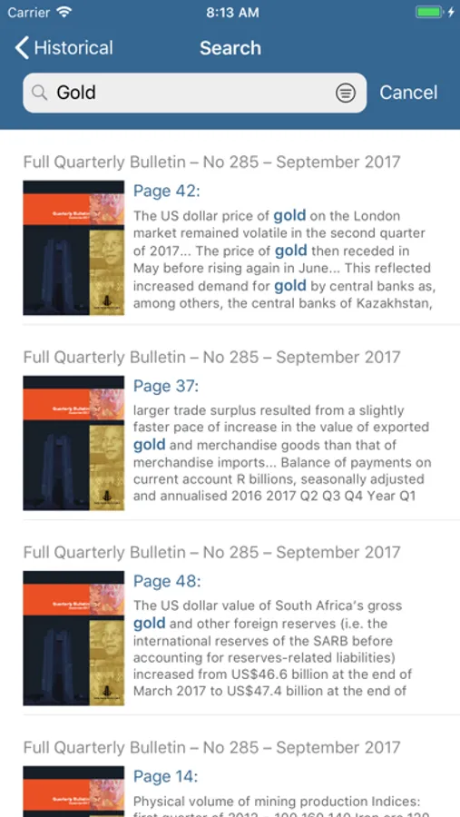 The App allows users to access the Quarterly Bulletin publications and provides quick and easy access to data in a format designed for mobile devices. The Quarterly Bulletin, a flagship publication of the South African Reserve Bank, is released on a quarterly basis and provides an analysis primarily of the domestic economy. It also contains a rich set of regularly updated statistical tables. What users can do with the app:
