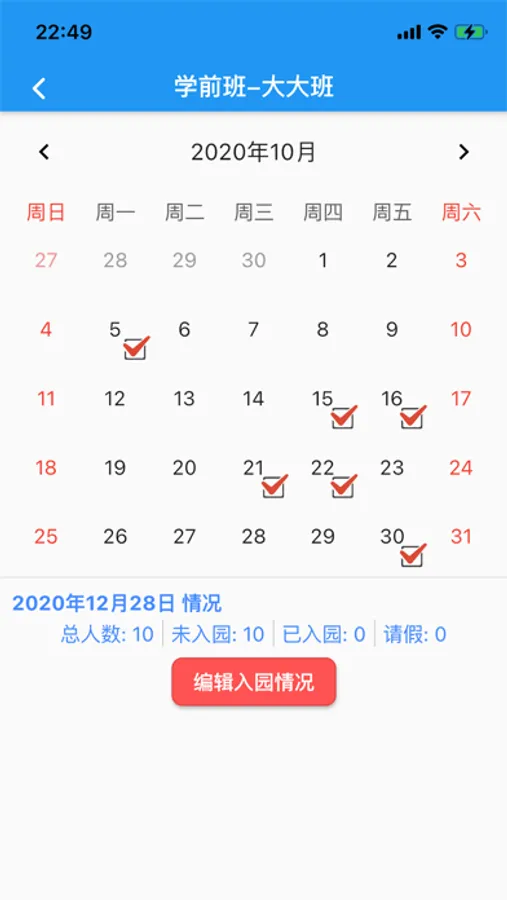 4.学生每天入园签到,生成学生入园统计,不需要浪费时间去点名来查看学生是否到园。