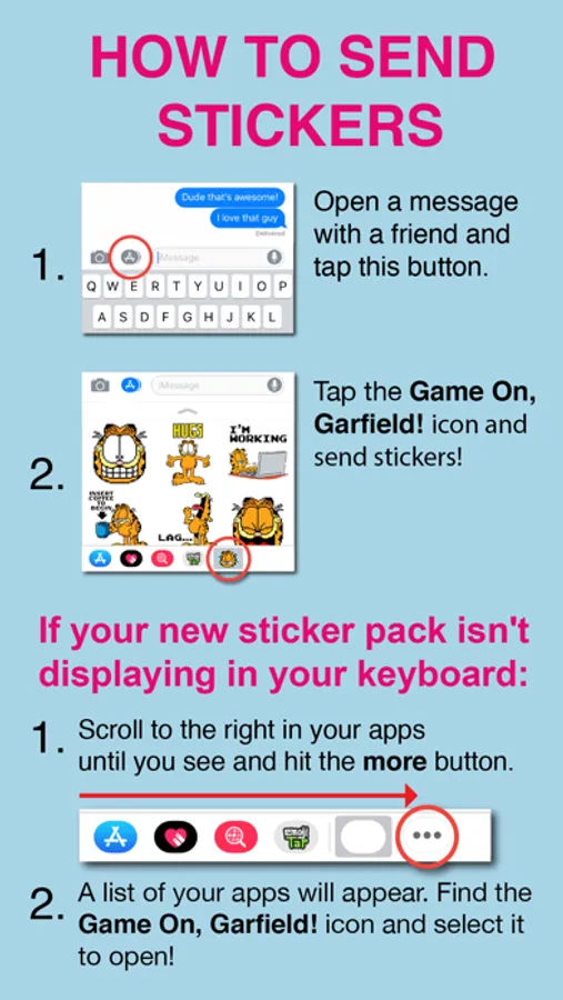 Share these rad, retro Garfield animations inspired by 8-bit video games. Fun level: Boss! Pack includes 24 animated stickers.