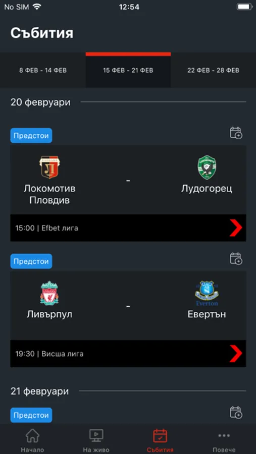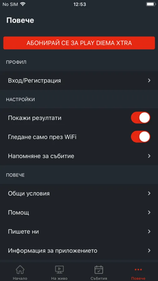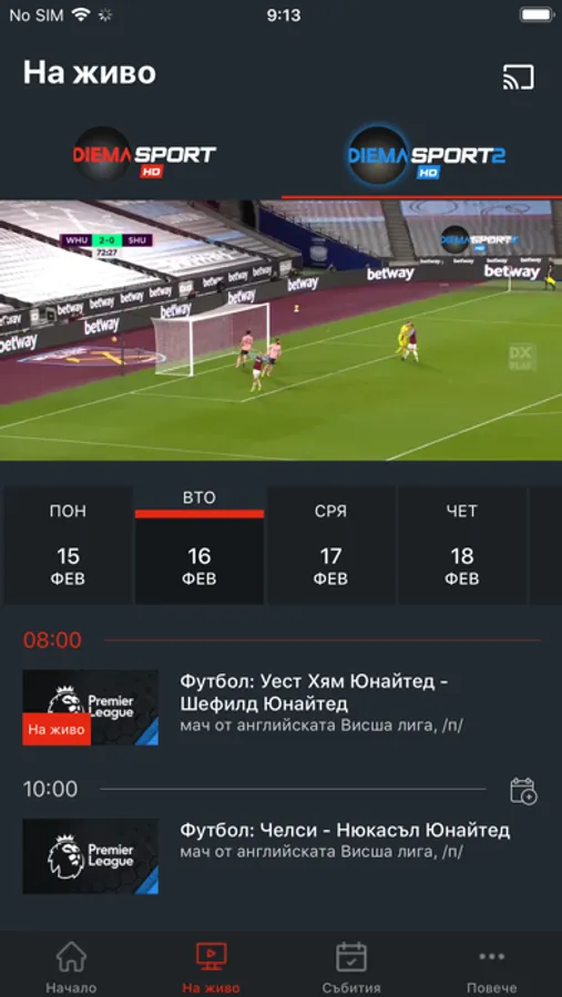 Регистрирай се, за да ползваш приложението и да се насладиш на най-доброто от Първа и Втора Професионална Футболна Лига и Купата на България, най-оспорваните дербита от Висшата Английска лига, Чемпиъншип и FA Cup, Формула 1, атрактивен баскетбол от NBA, най-добрия български волейбол, професионален бокс и още много избрани спортни състезания от цял свят.