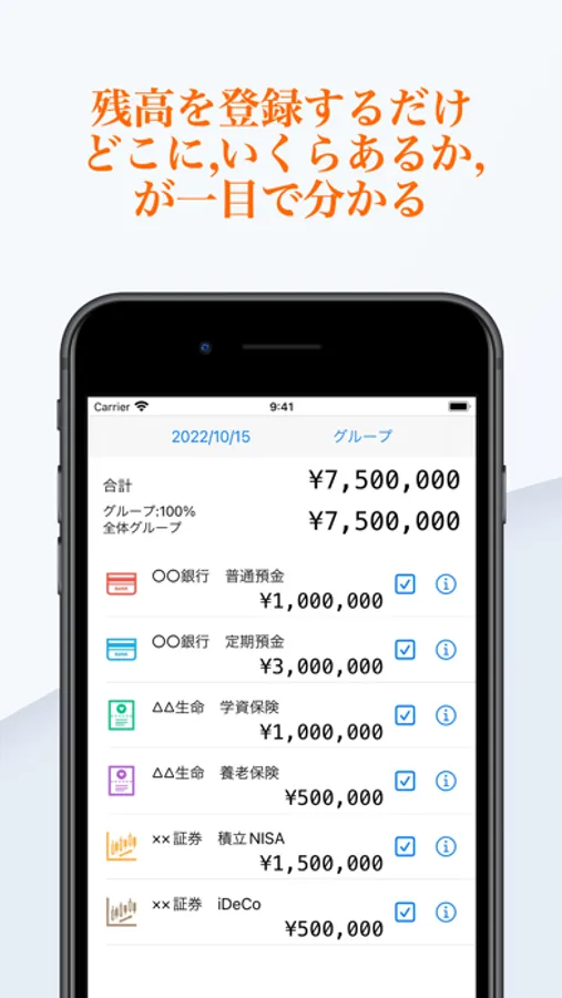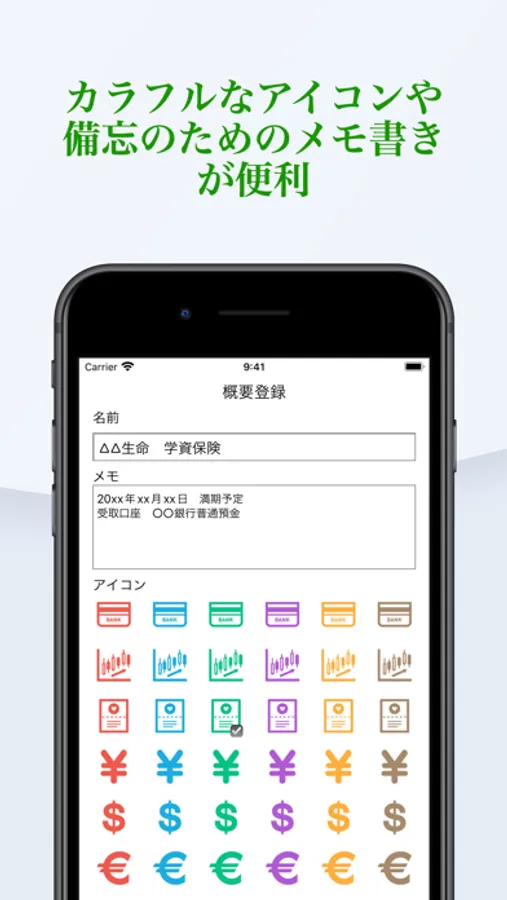 Easily manage assets such as bank and post office accounts, insurance, stock investment, electronic money, wallet contents.