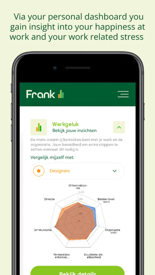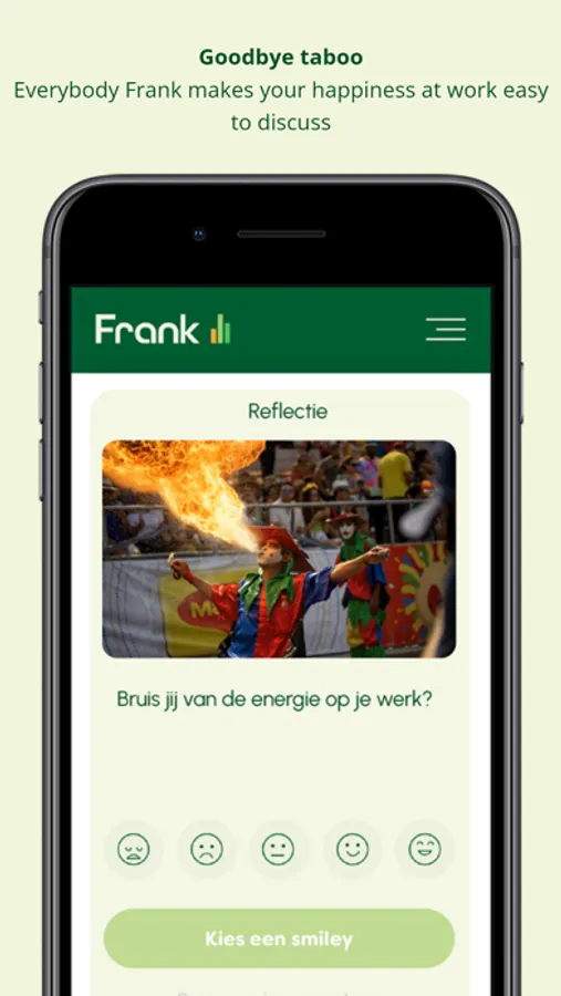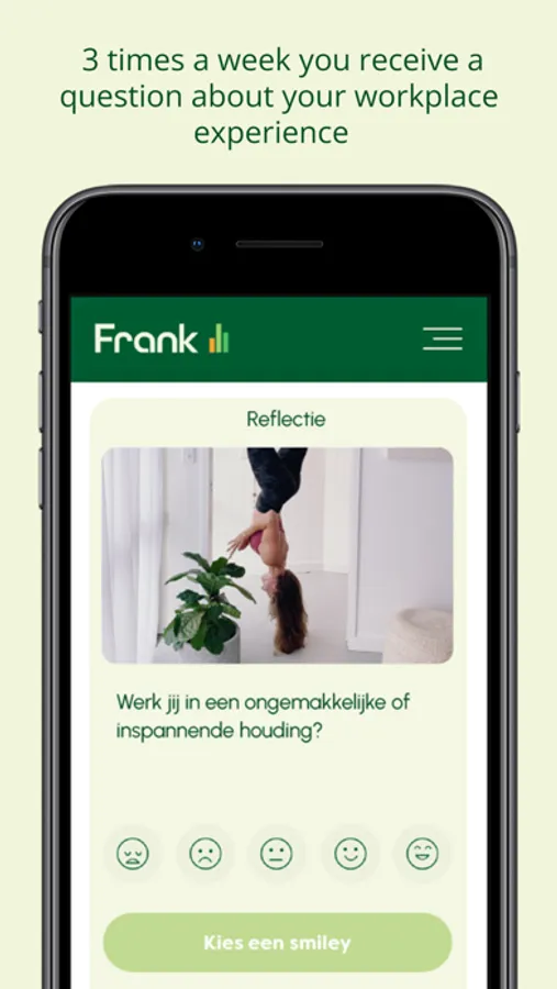 Every week you will receive short questions. With which you reflect on who you are, what you want, what you think and how you feel. Your answers are the starting point for you and your team to discuss your workplace happiness. Discover with Frank what you and your employer can do to make your work even more fun!