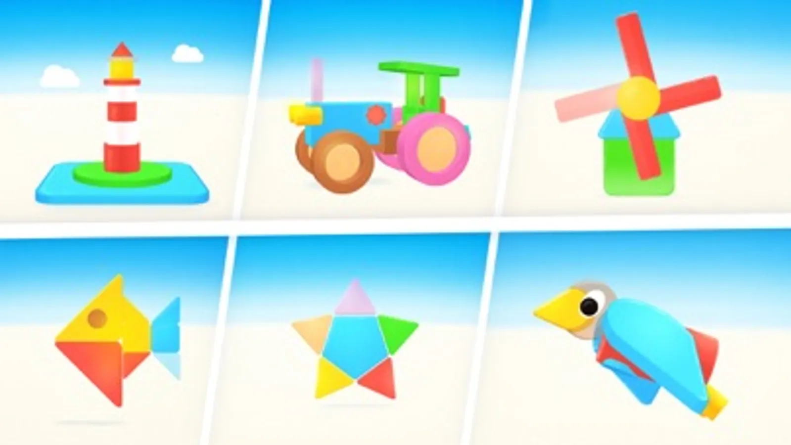In the difficult levels, 3D shapes must be recognized and assembled.
