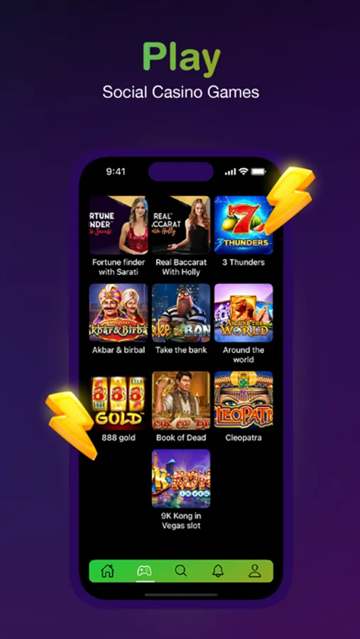 -Feel the casino vibe inside the app by playing social casino games inside the application.