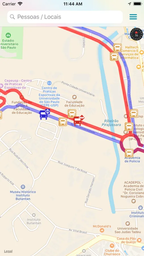 A posição dos ônibus na Cidade Universitária depende de serviço oferecido pela SPTRANS. A utilização contínua dessa característica pode ter impacto no consumo de energia do aparelho.