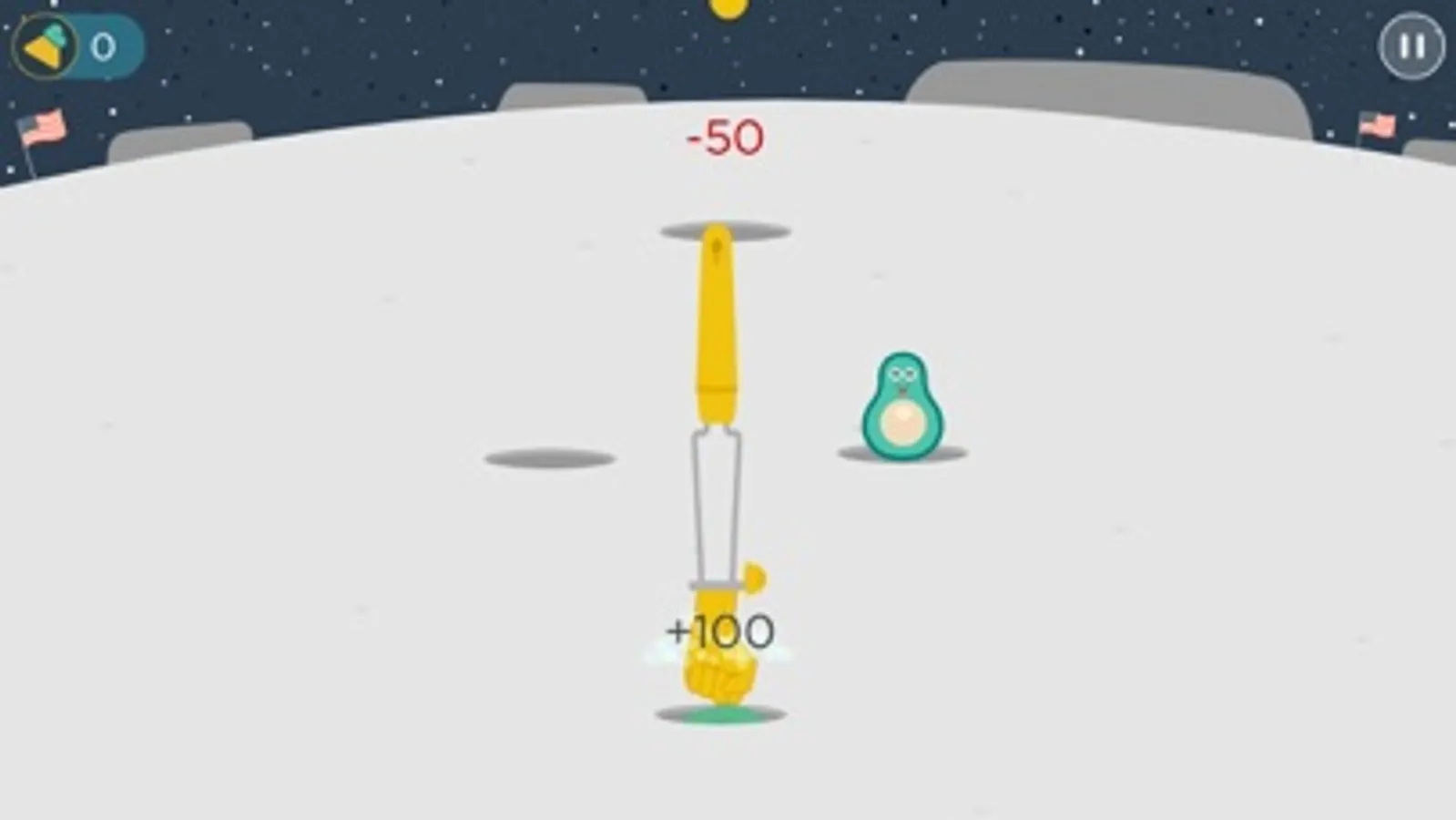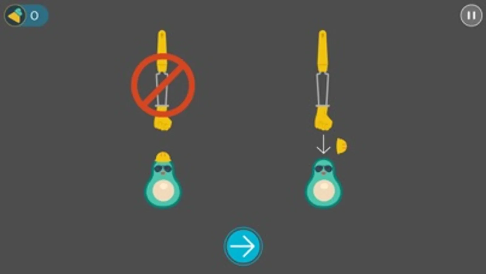 Players need to smash avocados that have no hat or that tip their hat but avoid smashing avocados with spiky hats or with electric hats.