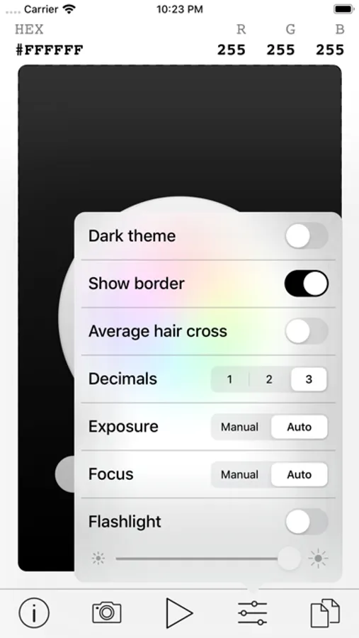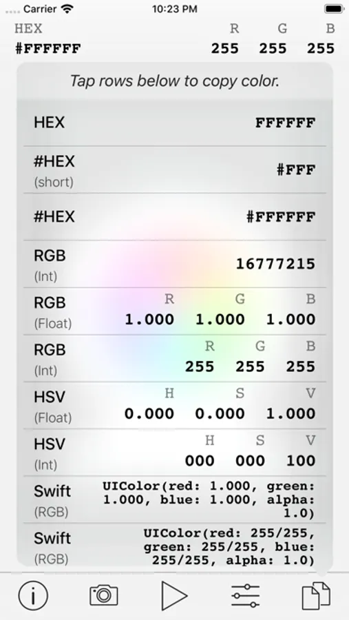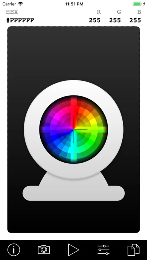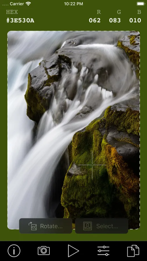 Use your live camera feed to select any color on the screen. You can also load an image from your photo library and select a color from it.