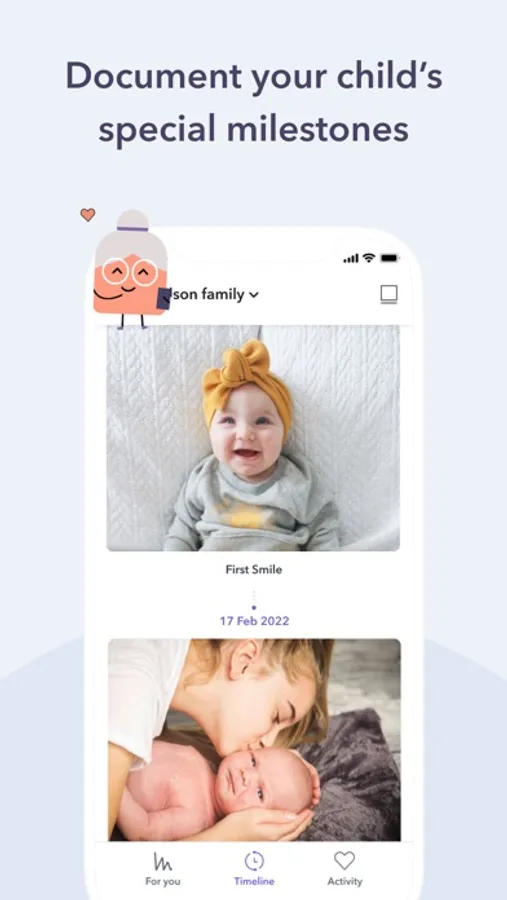 Add photos and videos of life’s unmissable milestones – like your baby’s first smile, first laugh or first steps – and build a timeline of milestones to look back on again and again.