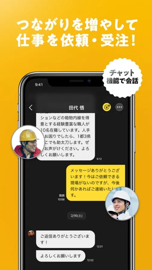 メッセージ機能で気軽に会話して、つながりを広げられます。仕事の条件や人柄等を確認して、仕事を依頼・受注できます。