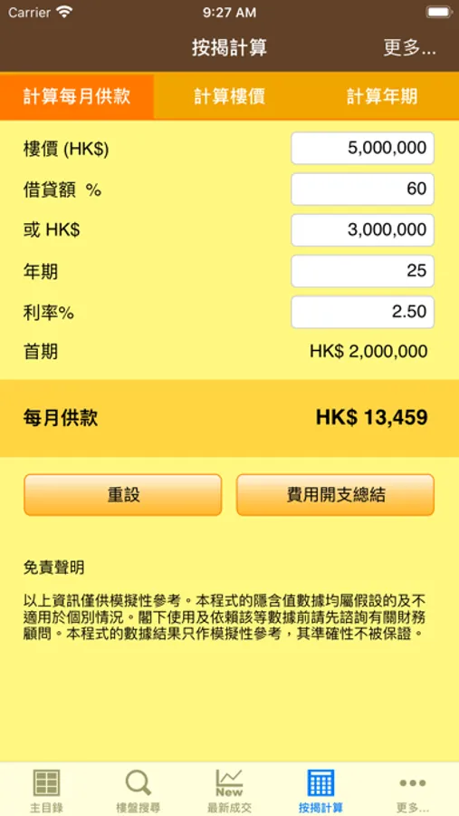 按揭計算 - 提供用戶計算置業開支及按揭貸款