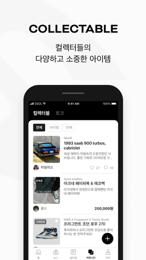 자신이 사랑하는 브랜드와 컬렉터를 팔로우할 수 있으며 자유롭게 이야기 할 수 있습니다.