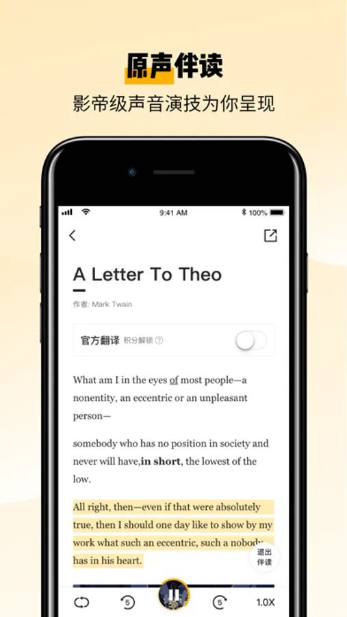 In this reading app, users can listen to stories, explore diverse albums, and customize reading difficulty. Includes audio playback, vocabulary lookup, note-taking, discussion forums, and personalized reminders.