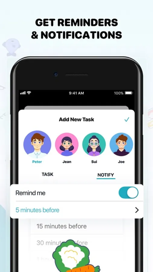 You can create and edit profiles for all family members with cute avatars or real photos.