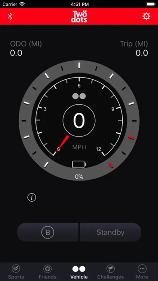 2. Through Bluetooth connection to the TwoDots scooter, the App can show the vehicle's power, speed, TRIP, ODO and so on.