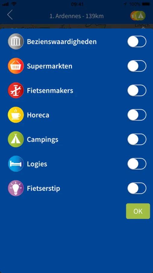 Met deze App kunt u diverse bekende lange afstand fietsroutes downloaden. Denk bijvoorbeeld aan de Groene Weg naar de Middellandse Zee of de Maas fietsroute. Het aantal zal elk jaar uitbreiden. Met de App heeft u in één keer alles wat u nodig heeft om uw geselecteerde fietsroute probleemloos af te kunnen leggen; de track, de kaarten, het hoogteprofiel en alle door ons geselecteerde voorzieningen als overnachtingsmogelijkheden, fietsenmakers etc. Fout rijden is niet meer nodig.