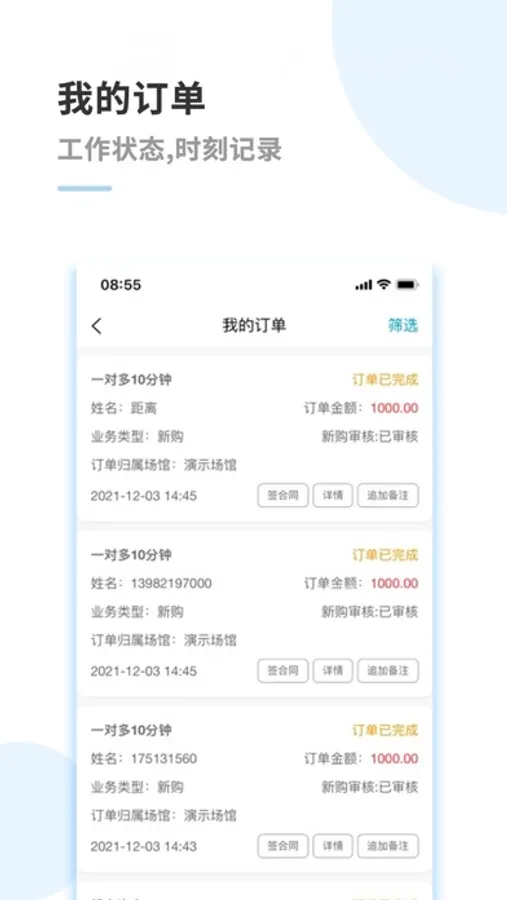APP介绍:尚褆达斯员工端是基于健身机构员工角色开发的APP工具,主要解决员工在维护会员过程中的信息录入、信息查询、跟踪记录等问题,方便员工随时随地利用移动APP推进工作,查看相关信息数据,了解近期会员维护情况。系统更新:录入新增会员信息;会员信息查看;会员维护跟进记录;潜在会员、新增会员、正式会员查看等;