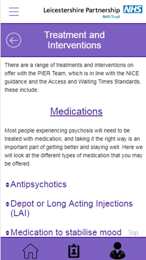 The PIER app provides a single platform for patients and carers to learn more about the symptoms of psychosis and its management, particularly what to expect when under the PIER Team. There are helpful links which provide information about psychosis and related disorders. There are useful links to improve knowledge of therapeutic interventions, including medication used to treat psychosis and other psychosocial interventions, like cognitive behavioural therapy and family therapy. The app has information about the referral process, recovery and how to seek help in crises. There is focus on healthy lifestyle choices and physical health monitoring in severe mental illness.
