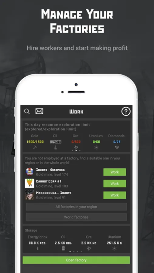 In Rival Regions you will be able to create political parties, get a place in parliament and issue laws, travel to hundreds of regions all over the world and obtain oil, gold, ore, uranium and diamonds.
