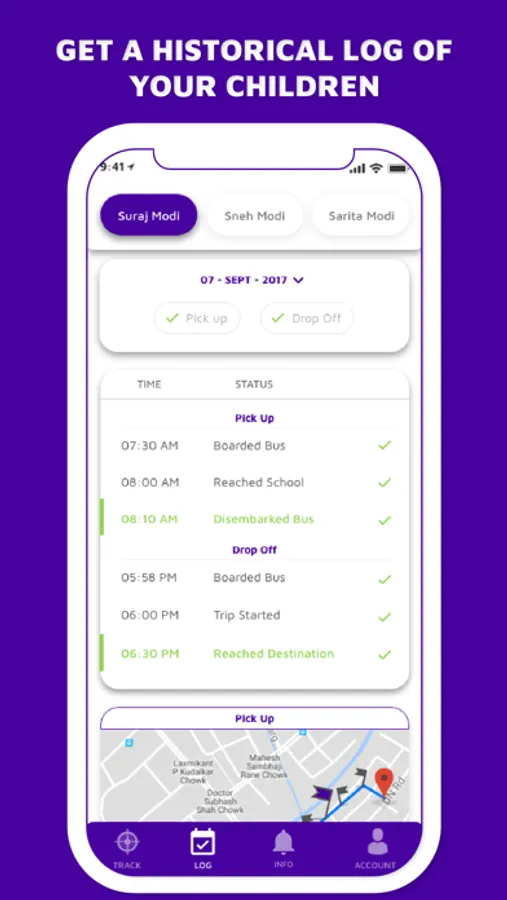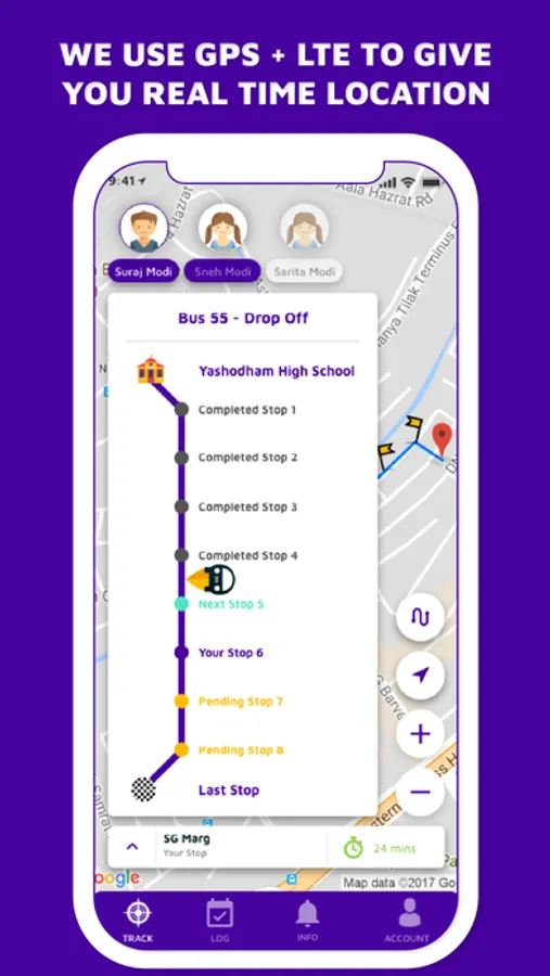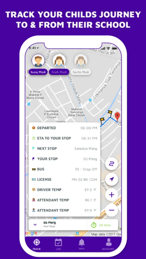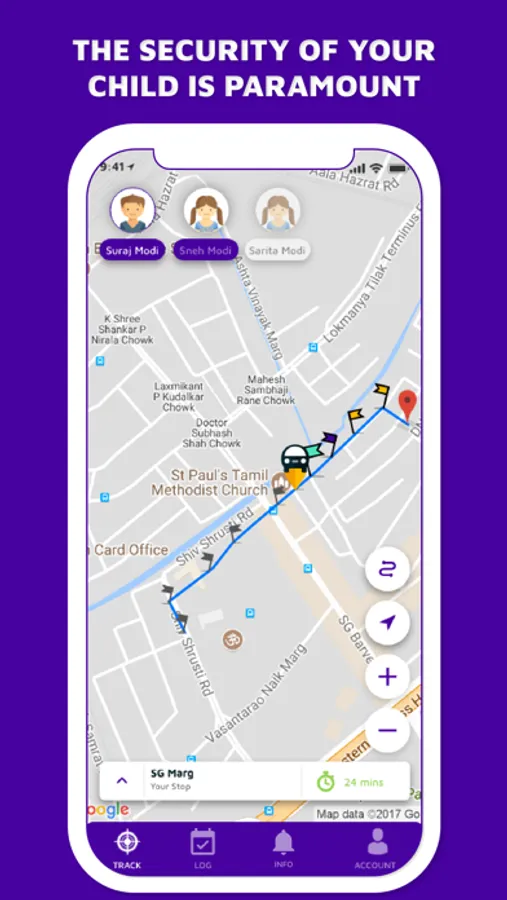 Using AIS 140 compliant GPS devices, Cell Towers, RFIDs & Google Maps® API in tandem, we offer a seamless experience into your child's journey to their school and back, so you never have to worry about their whereabouts again.