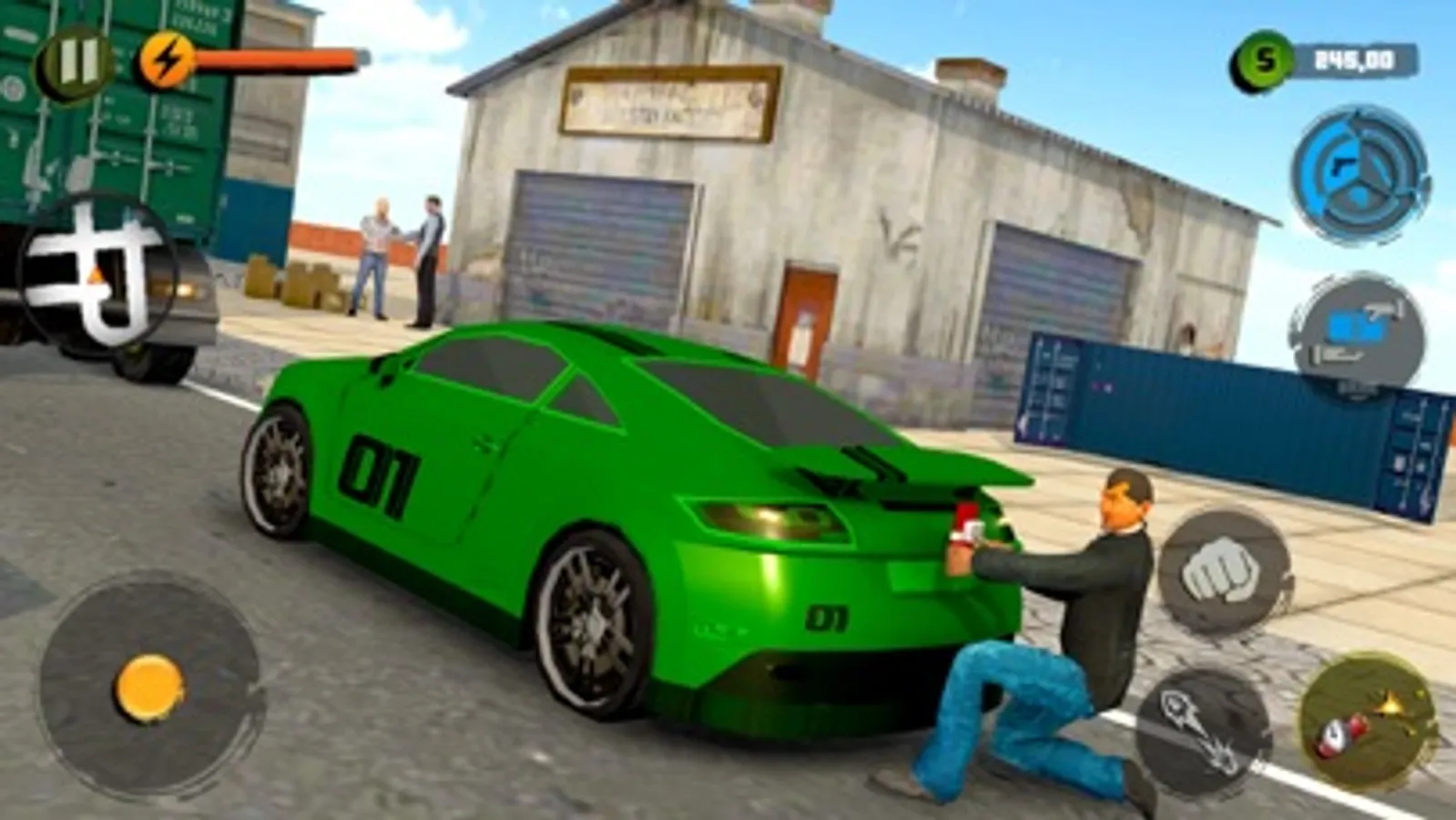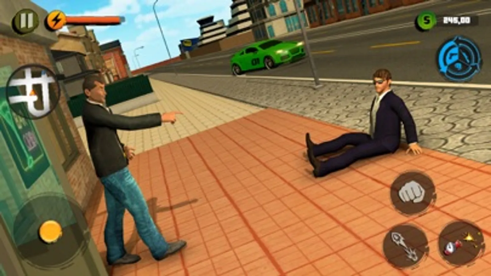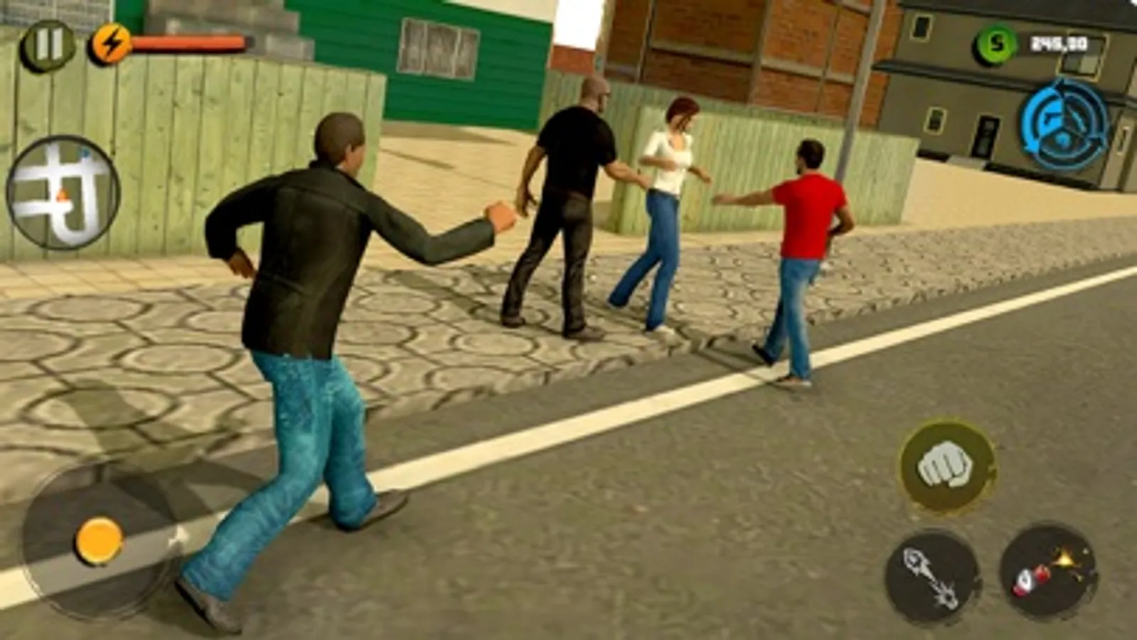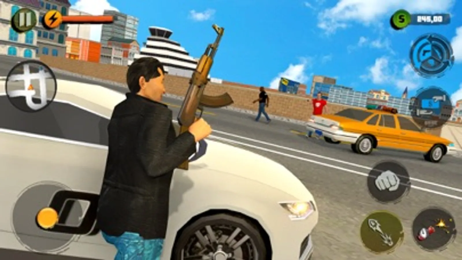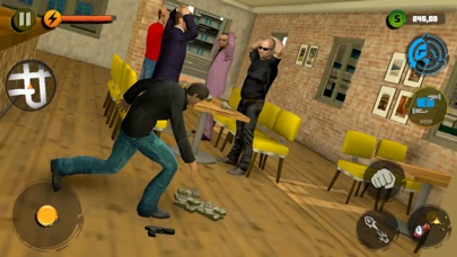 Your gang controls the politicians and the police of the city. You run a network of underground gangsters and possess the largest stockpile of guns and cash. But a storm is stirring...your allies are rebelling against you! Take your city back by chasing other thugs and criminals through alleys and roads. Enter hidden meeting places and catch them by surprise. Use different attack combos to protect yourself, like Super Punch, and use an AK-47 or other weapons. Target, aim, shoot, and run! Chase and steal cars, defend your crew, rob banks, fight cops who get in your way, and work with your henchmen. Make sure your opponents go to prison so you can win back your town! Explore a grimey and realistic urban environment with city sounds and visuals. Choose your favorite gangster character to look intimidating.
