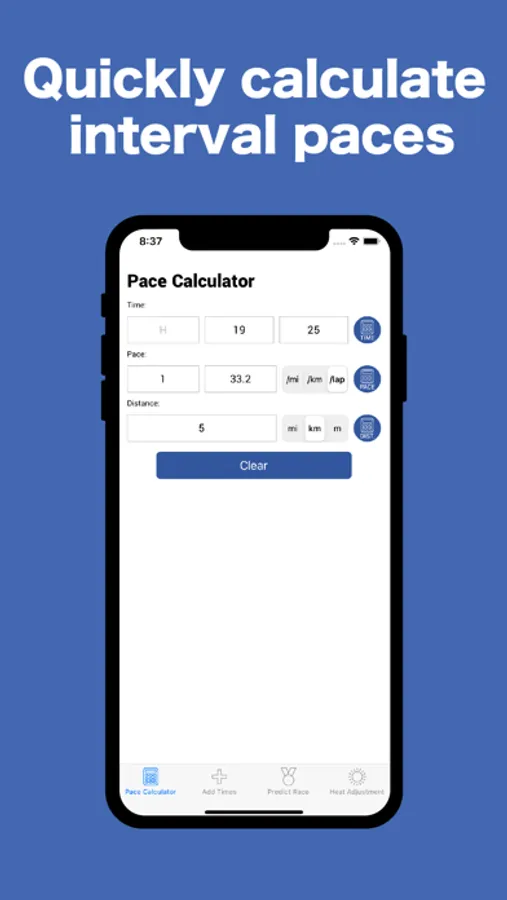 4 calculators for runners. With a streamlined interface so that you can calculate paces (and more) with fewer button taps than other apps.