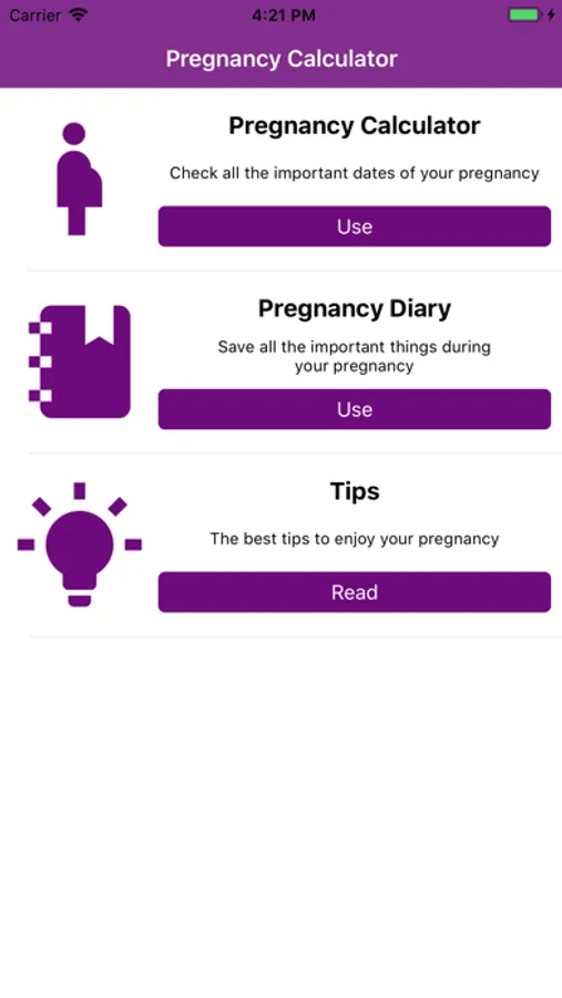 Using this pregnancy calendar is more than easy. After the first symptoms of pregnancy you can start using this app: