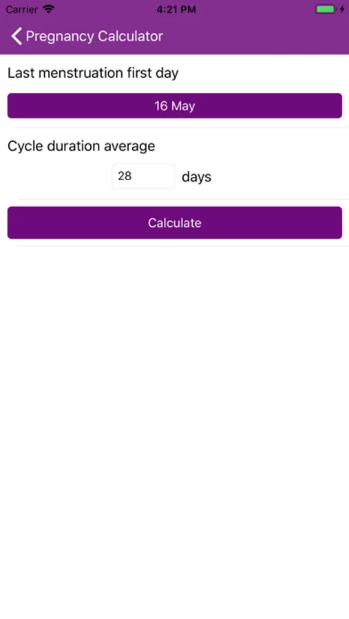 Pregnancy Calculator is a free app, which will help you to know the due date, the current pregnancy stages, the date of conception, signs of early pregnancy and also when the pregnancy will end.