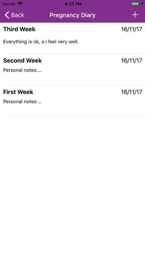 3.-You will also find a complete pregnancy diary, in which you can write down stuff you consider interesting, for your personal use as well as for showing it to your doctor later.
