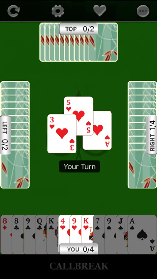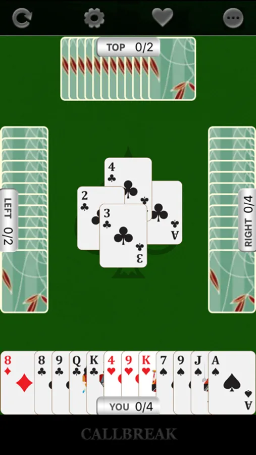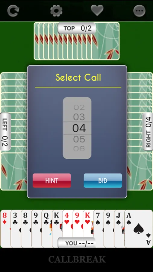 Call break - Grochi card game is a strategic trick-based card game played by four players with a standard deck of 52 playing cards. Call break card game is played using a standard international 52-card pack. In call break card game the cards of each suit in rank from high to low A-K-Q-J-10-9-8-7-6-5-4-3-2. Spades are permanent trumps in call break card game : any card of the Spade suit beats any card of any other suit.Deal and play in call break card game are counter-clockwise.To succeed in call break card game , a player must win the number of tricks called, or more trick than the call. If a player succeeds in call break card game, the number called is added to his or her cumulative score. Otherwise the number called is subtracted in call break card game. After the end of 5th or 13th of 20th round the winner is decided, player with higher total points is considered as the winner of the game. Call break card game is very much popular in Nepal and India. Call break card game is also popular in Bangladesh and some other Asian, middle east and European countries. In Bangladesh Call break card game is known and played as call bridge card game with some different rules and scoring system. Call break card game is also very much popular in North America as Spades. The difference between Spades and call break is by game length, scoring and call bidding system. In call break card game, game length is fixed number of rounds, but in Spades game length based on fixed score. Others rules and game logic are almost same.Difference between call break and call bridge in game length, over suit playing,game round etc.