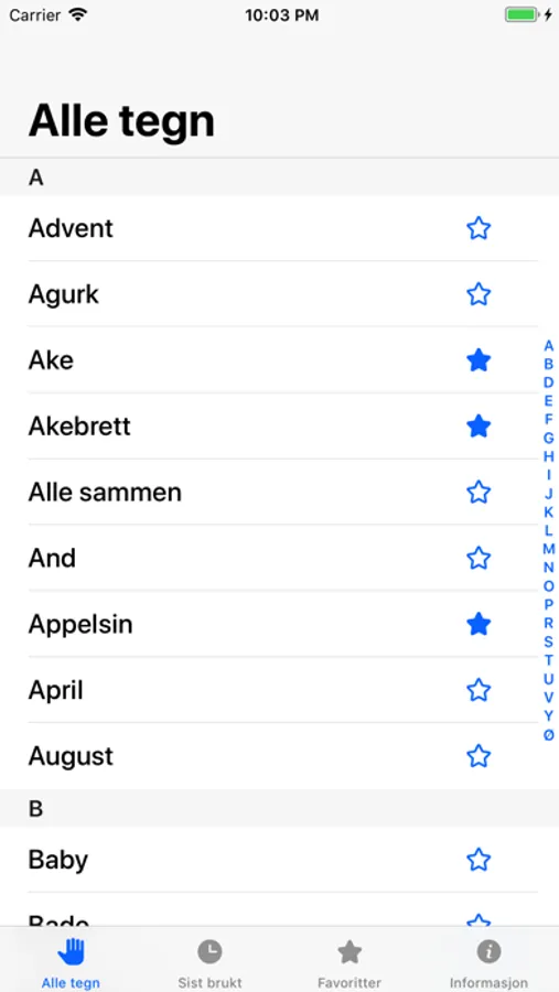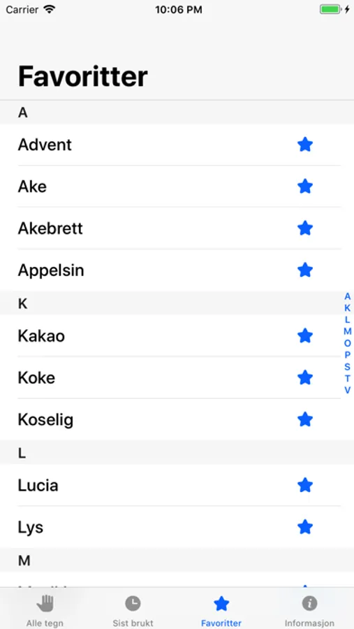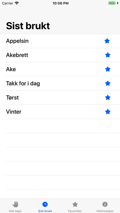 Klikk på ordene for å se video av tegnet for det aktuelle ordet.