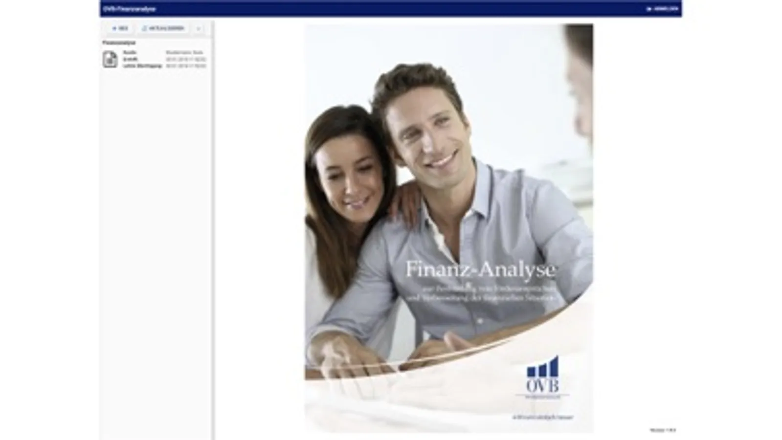Die OVB Finanzanalyse bietet dem OVB Berater die Möglichkeit Kunden- und Vertragsdaten digital zu erfassen und automatisch an das Beratungssystem OVB Sales zu übertragen. Die übertragenen Daten können für eine Beratung mit Bedarfsanalyse und Berechnung von Angeboten verwendet werden.