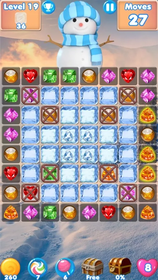 Snowman Swap is a match 3 puzzle game where you can match and collect frozen candies! This fun free game will give hours of fun for the holidays with challenging puzzles! Match frosty candy, ornaments, gifts, and all your favorite snowman characters!