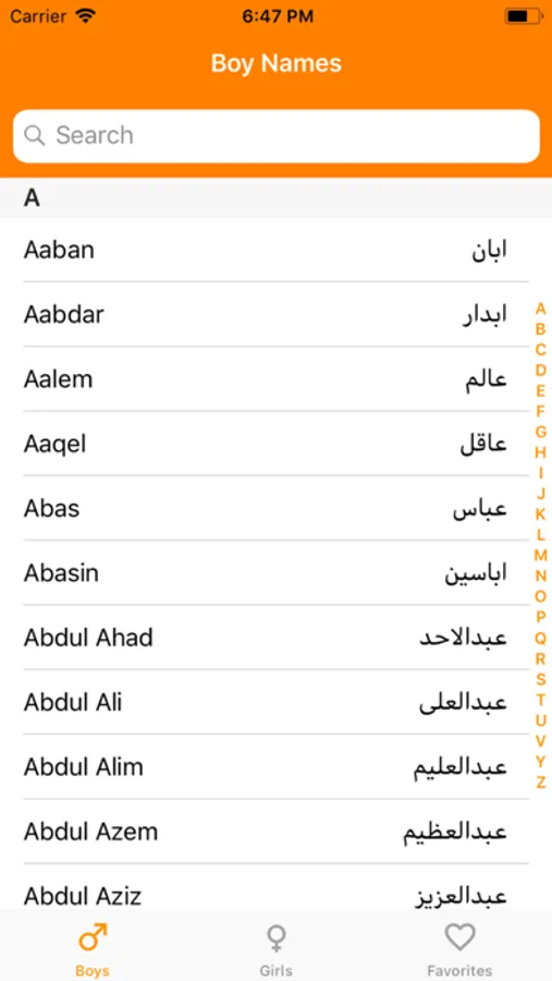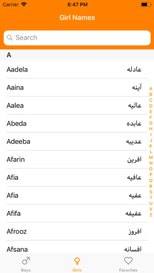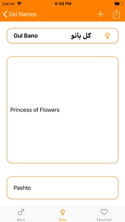 These names are categorized based on gender (masculine and feminine) for easy navigating through records. The app also indexed and sorted names based on alphabetic order. This will help users to quickly jump to a section they want and look for a name. Beside this, a robust search engine is in a place to search for a name using the search bar. Names are listed both in English and native letters, and full details appear once the name is tapped. The detail page shows the meaning of a name, origin, and gender. Another cool feature is adding names to the favorite list for a quick navigation of the list later. Users can also share a name through a social network or text messaging.
