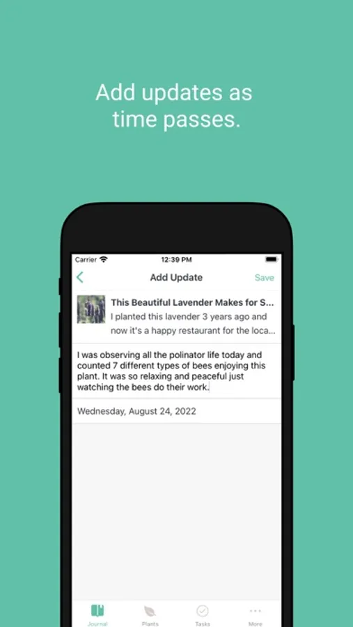 Let's Garden is a simple journaling app to keep track of your gardening progress so you can go back and remember what worked and what didn't.