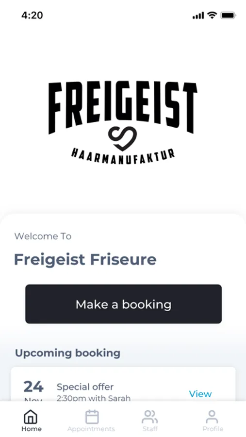 The Freigeist Friseure app makes booking your appointments and managing your loyalty points even easier. You're just a few taps away from feeling good and looking great!
