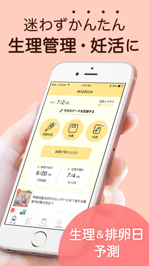 ◆妊活に便利な排卵日や生理日を予測してくれるので、妊娠しやすい日が一目でわかる!