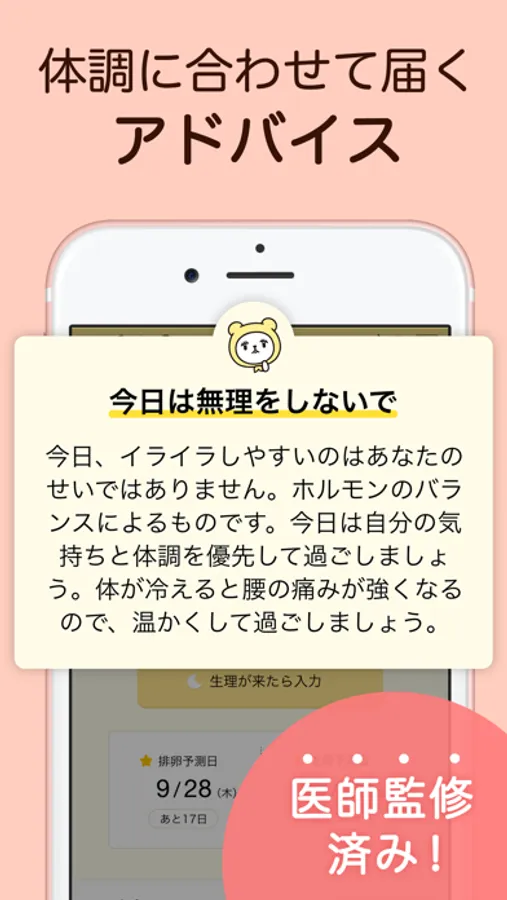 このアプリは産婦人科医の監修を受けておりますので、安心してご利用いただけます。