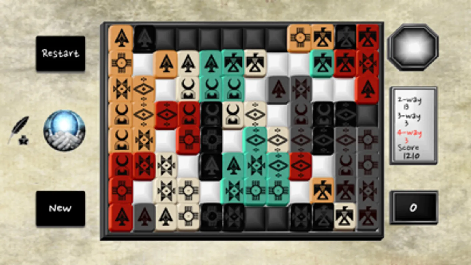 An ancient puzzle that will test your meditative and strategic powers. Balance the yin & yang of patience vs. the quick score. Your goal is to empty the pouch, but plan ahead to find the elusive 4-way.