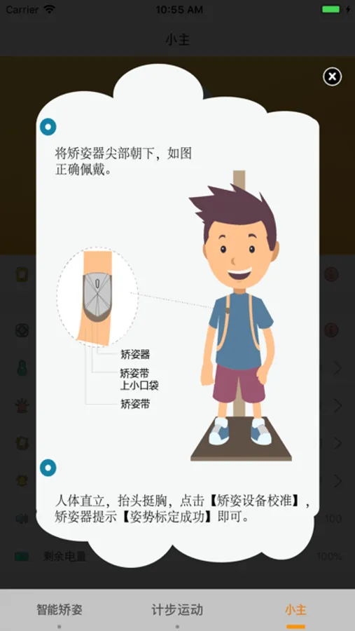 智能儿童矫姿器是由湖南优雅女人健康管理有限公司推出的,配合矫姿带使用的一款智能硬件设备。矫姿器正确佩戴后,当人体站立、行走处于不良姿态时,矫姿器会及时发出振动及声音提醒,进而提醒佩戴者注意坐姿以及行走姿态,对养成好的体姿习惯有促进作用。同时佩戴者的姿态,运动数据会传到手机App以及云端服务器。佩戴者可以通过App来了解自身坐立行走姿态以及日常运动情况。